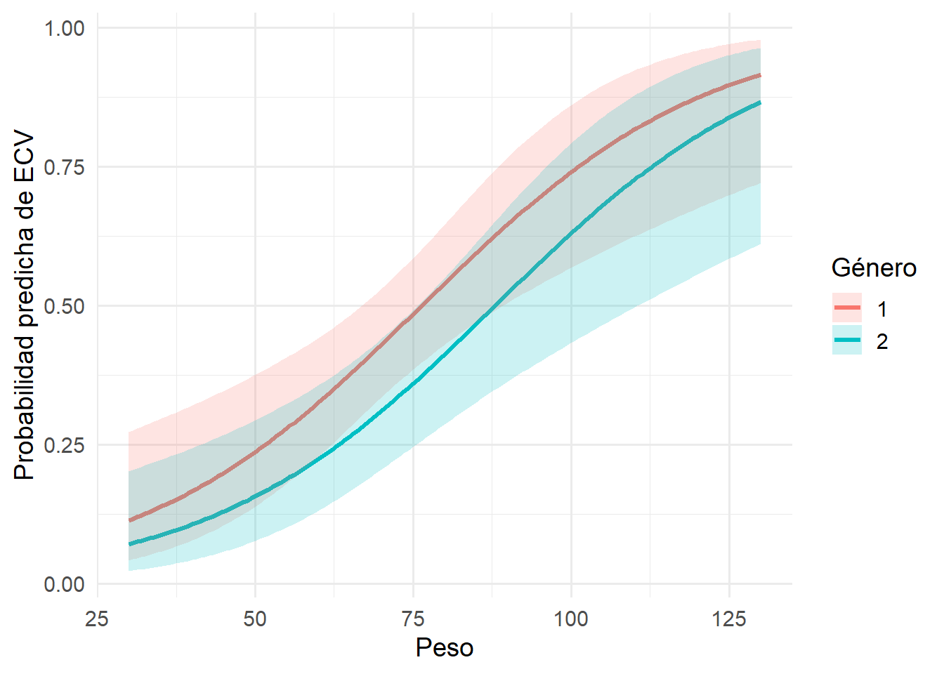 Conclusión: el peso se asocia positivamente con la probabilidad de contraer ECV.